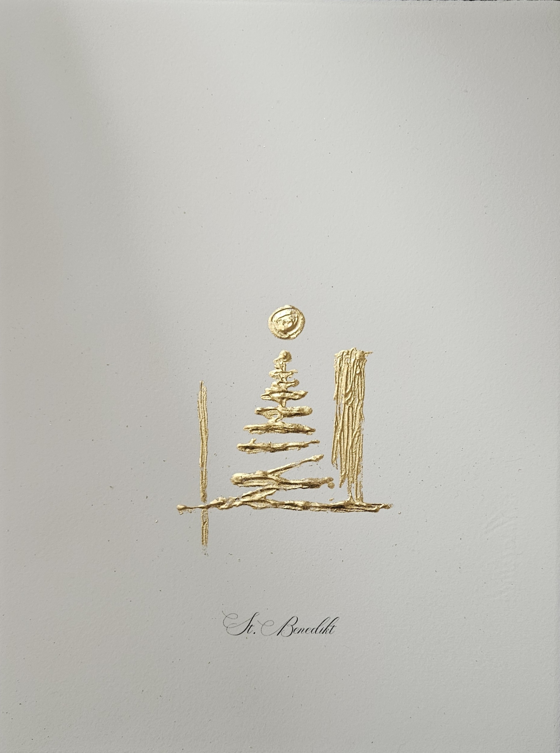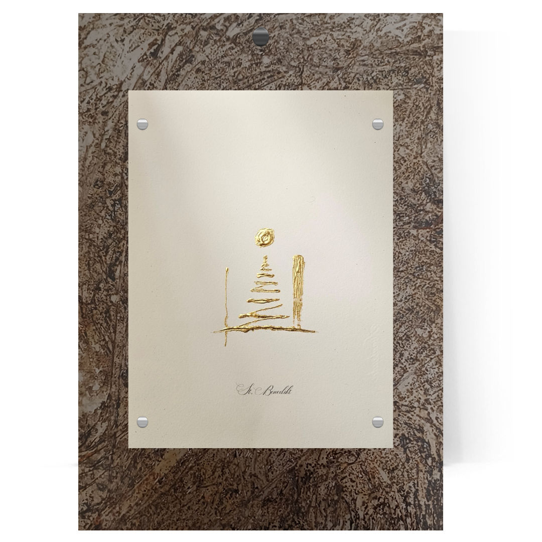 To place an image of St. Benedict in the office, creates an atmosphere of concentration and inner balance. It is reminded that success is achieved not only through the outer gloss, but through inner strength. The Golden staircase symbolizes the steady, purposeful climb – step-by-step to success. The stylized book calls for wisdom in decision-making and the importance of life-long learning. The golden disc finally lit up like a sun, giving warmth and Inspiration in challenging moments.