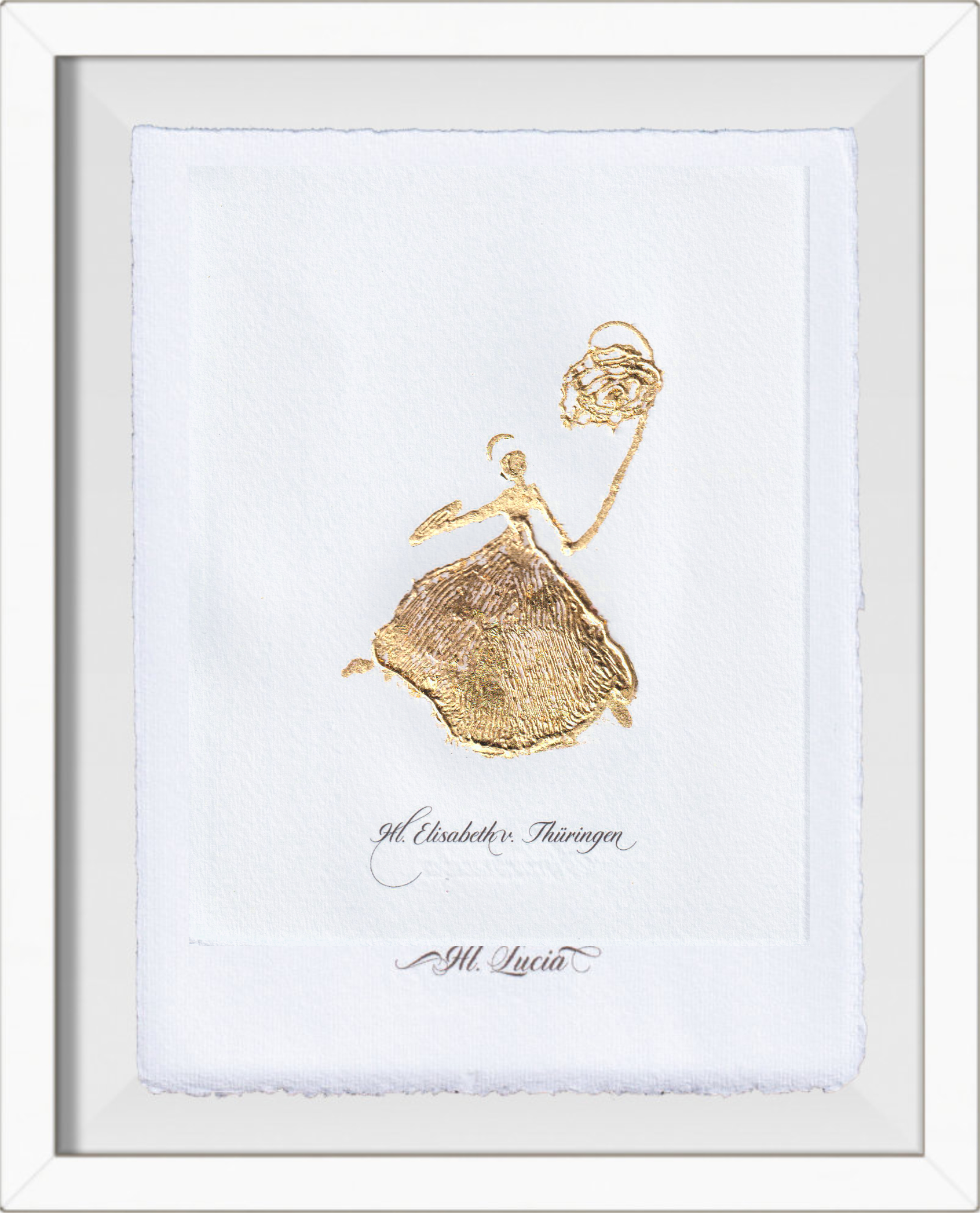 Das Bild, in strahlendem Gold auf hochwertigem Büttenpapier gemalt, verbindet die Kostbarkeit der verwendeten Materialien mit einem zeitgemäßen künstlerischen Stil. Es strahlt Wärme, Anmut und Hoffnung aus und erinnert daran, dass die Schönheit des Gebens niemals vergeht.